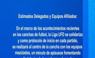 El comité Organizador de la Liga UFD, agradece la incorporación del nuevo protocolo por la NO violencia.